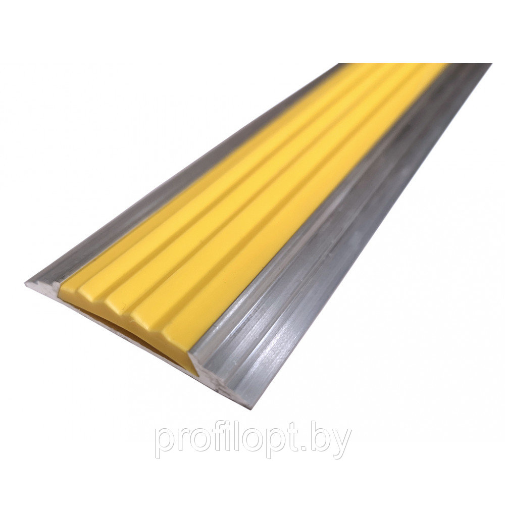 Порог алюминиевый с резиновой вставкой противоскольжения ЖЕЛТАЯ 46 мм. 1,5 м.
