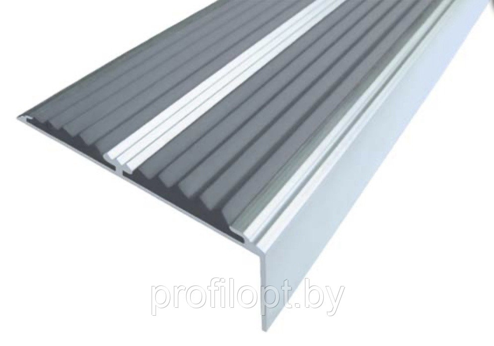 Алюминиевый угловой профиль противоскользящий с двумя резиновыми вставками СЕРЫЕ по-68*23мм. 1,5м.