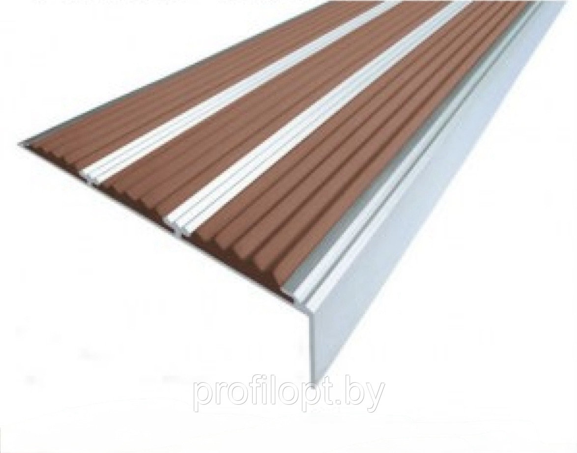 Алюминиевый угловой профиль противоскользящий с тремя резиновыми вставками КОРИЧНЕВЫЕ 98*25мм., 1,0 м.